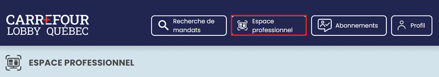 Note : Les fonctionnalités de publication dans Carrefour Lobby Québec sont activées seulement une fois l’Espace collectif validé par Lobbyisme Québec.
