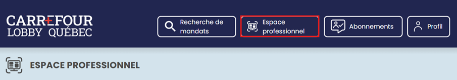 - Cliquer sur votre Espace professionnel.